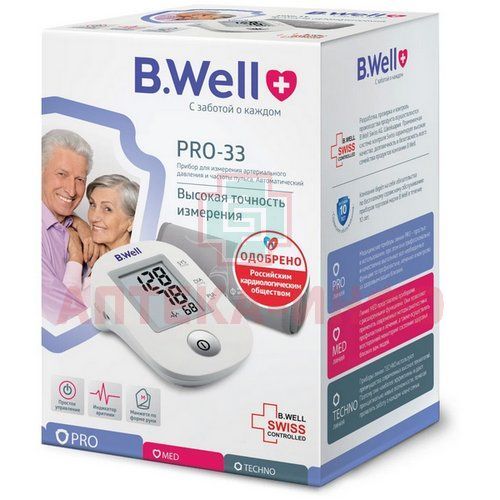 Тонометр PRO-33 (автомат, 1 кнопка, манжета M-L, адаптер) B.Well Rehab