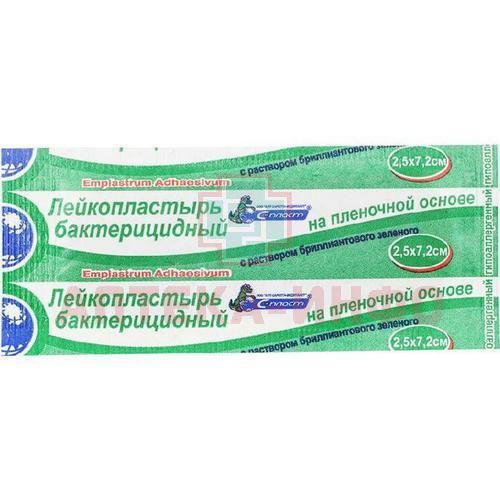 Лейкопластырь бактерицидный С-ПЛАСТ 2,5 х 7,2см (плен. основа) (р-р брилл. зеленого) Сарепта-Медипласт/Россия