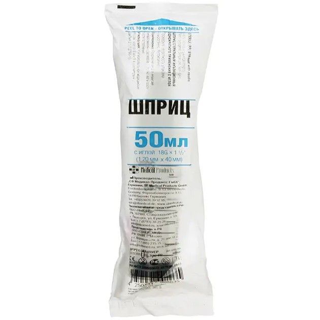Шприц одноразовый с иглой 50мл (3-х комп.) 18G (игла 1,2х40) №1 SF Medical Products GmbH/Германия