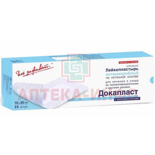Лейкопластырь ДОКАПЛАСТ с мирамистином антимикробный 10x35см №25 Новые перевязочные материалы