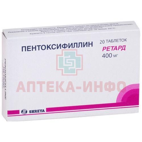 Пентоксифиллин таб. ретард п/пл. об. 400мг №20 Shreya/Индия