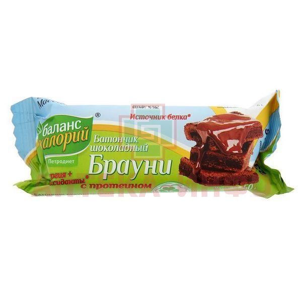 Батончик БРАУНИ БАЛАНС КАЛОРИЙ шоколадный с протеином 50г Петродиет