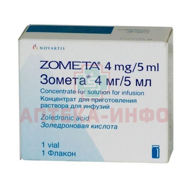 Зомета фл.(конц. д/приг. р-ра д/инф.) 4мг 5мл+ р-ль Novartis Pharma/Швейцария