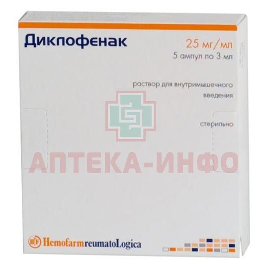 Диклофенак амп.(р-р д/в/м введ.) 25мг/мл 3мл №5 уп.конт.яч. - пач. карт. Hemofarm koncern A.D./Сербия