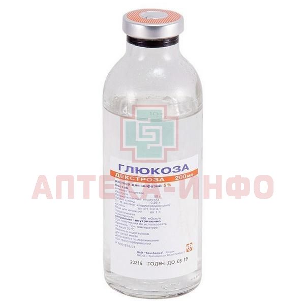 5% раствор декстрозы представляет собой изотонический раствор с осмолярностью (с учетом вспомогательных веществ) около 286 мОсм/л. Потребляемая калорийность 5% раствора декстрозы составляет 200 ккал/л.