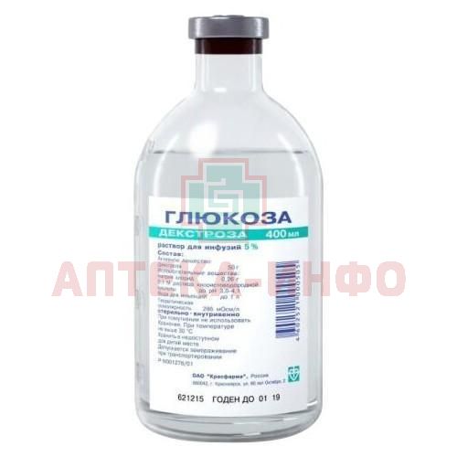 Глюкоза бут.(р-р д/инф.) 5% 400мл №12 ящ.карт. Красфарма