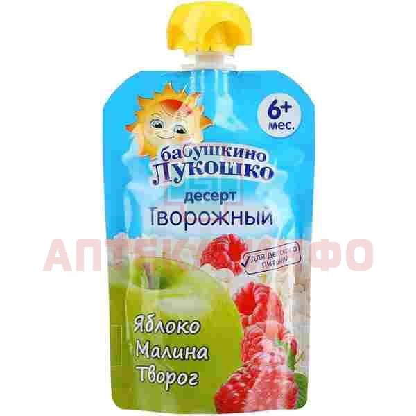 Пюре БАБУШКИНО ЛУКОШКО творог/яблоко/малина (с 6 мес.) 90г Фаустово