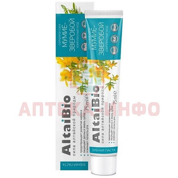 Зубная паста ALTAIBIO комплексный уход Мумие и Зверобой 75мл Две линии