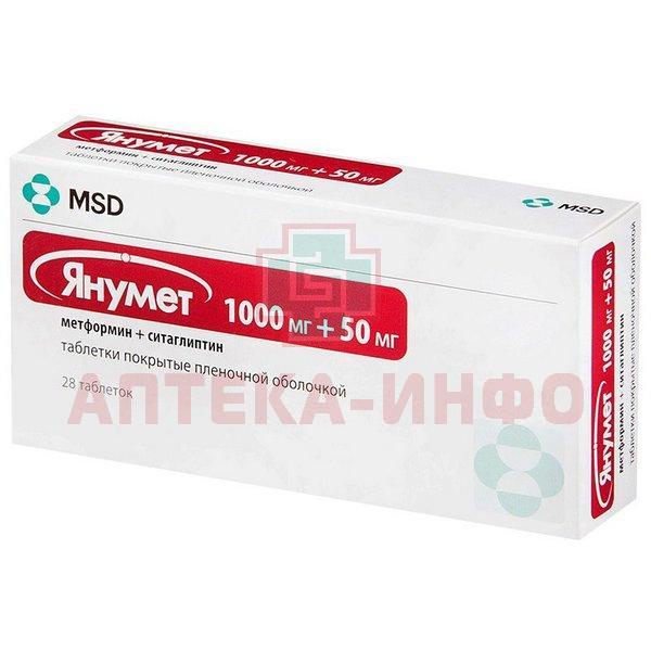 Янумет таб. п/о 1000мг + 50мг №28 Patheon Puerto Rico/США/Акрихин