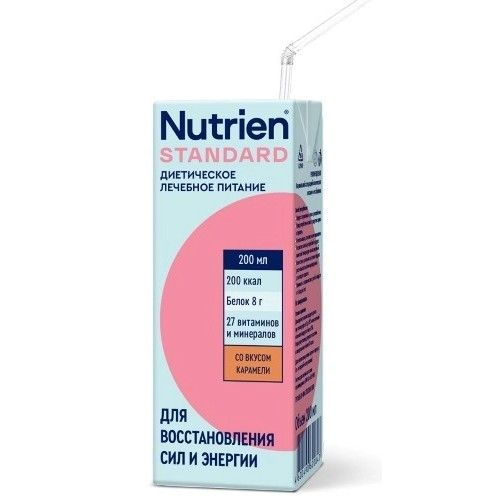 - Nutrien® Standard (Нутриэн® Стандарт) со вкусом карамели, лечебное (энтеральное) питание 200 мл - жидкая готовая смесь в упаковке Tetra Pak . К упаковке прилагается одноразовая стерильная трубочка.