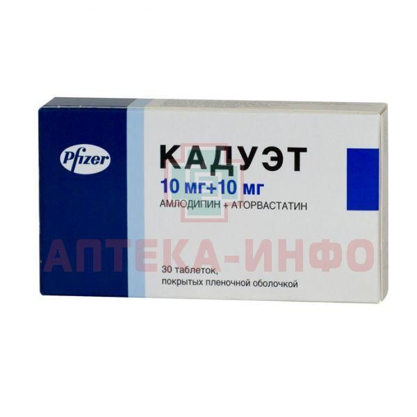 Кадуэт таб. п/пл. об. 10мг + 10мг №30 Pfizer Manufacturing Deutschland/Германия