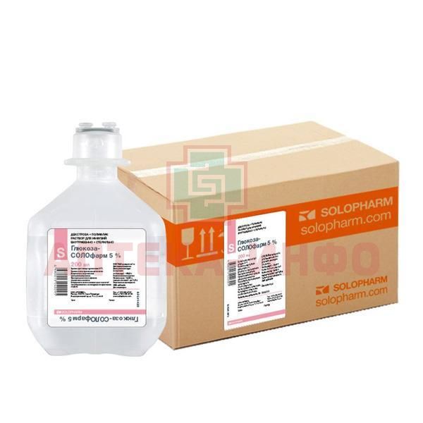 Глюкоза-СОЛОфарм фл.(р-р д/инф.) 5% 200мл №20 короб.карт. Гротекс