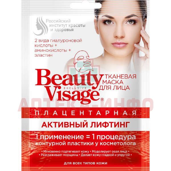 Маска косметическая Beauty Visage Плацентарная Активный лифтинг д/лица ткан. 25мл Фитокосметик/Россия