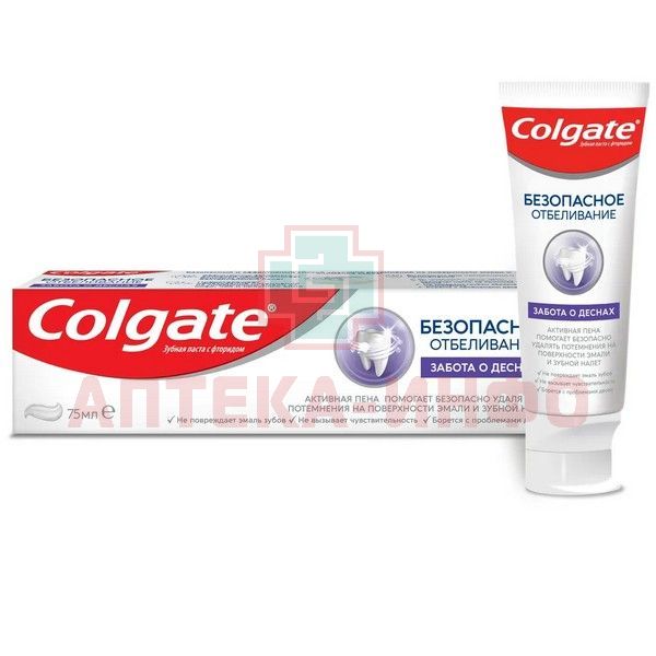 - COLGATE Безопасное отбеливание Забота о деснах отбеливающая зубная паста