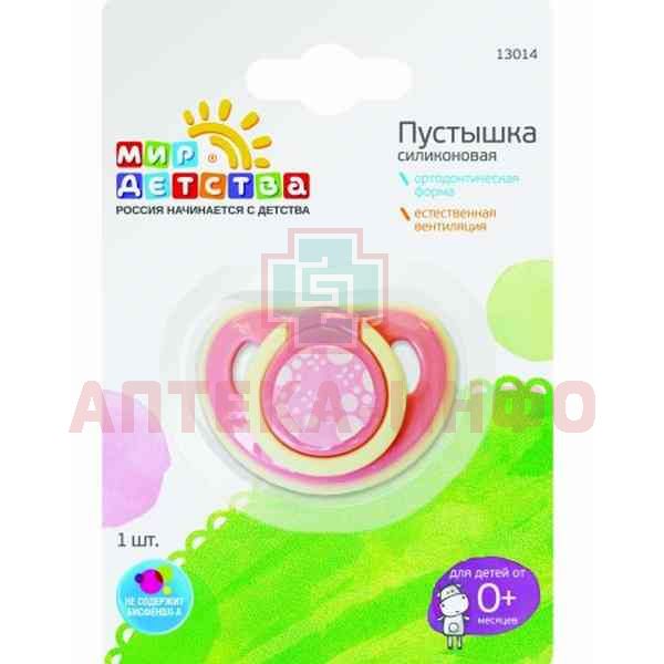 Соска-пустышка МИР ДЕТСТВА 13014 "Бабочка" силикон. ортодонич. с кольцом (с рожден.) Мир Детства