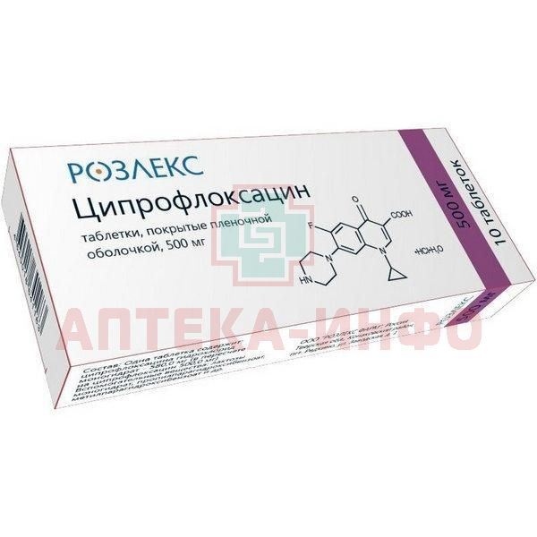 Ципрофлоксацин таб. п/пл.об. 500мг №10 Розлекс Фарм