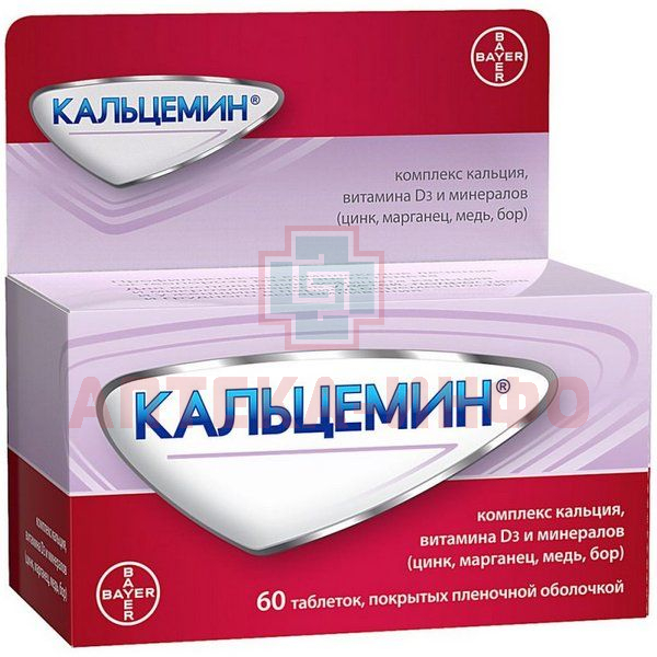При одновременном применении препарата Кальцемин® с витамином А уменьшается токсичность витамина D3. Фенитоин, барбитураты, глюкокортикоиды уменьшают эффективность витамина D3. Слабительные средства снижают абсорбцию витамина D3. Глюкокортикоиды, гормональные противозачаточные средства для системного применения, левотироксин ухудшают всасывание ионов кальция. При одновременном применении тетрациклинов интервал между приемами должен быть не менее 3 часов, бисфосфонатов и натрия фторида (нарушается их всасывание) - не менее 2 часов. При совместном применении препарата Кальцемин® с сердечными гликозидами повышается их токсичность (необходим контроль ЭКГ и клинического состояния), с тиазидными диуретиками - увеличивается риск развития гиперкальциемии, с фуросемидом и другими «петлевыми» диуретиками - увеличивается выведение кальция почками. Не следует применять Кальцемин® совместно с блокаторами кальциевых каналов. Не рекомендуется одновременный прием препарата с антацидами, которые содержат алюминий, из-за снижения их эффективности.