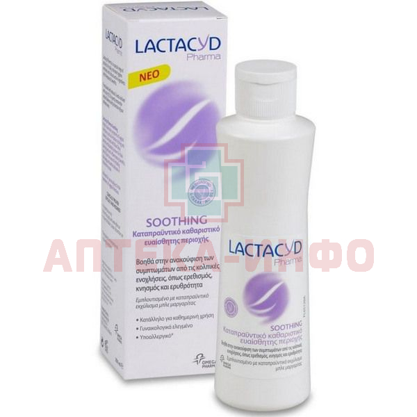 Лактацид SOOTHING (смягчающий) Фарма средство Устранение покраснения и раздражения д/интимн. гигиены (молоч. кисл., маргаритка, бисаболол) 250мл Omega Pharma/Бельгия