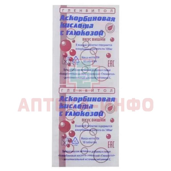 Аскорбиновая кислота таб. №10 (вишня) Glenmery Biotechnologies/Киргизия