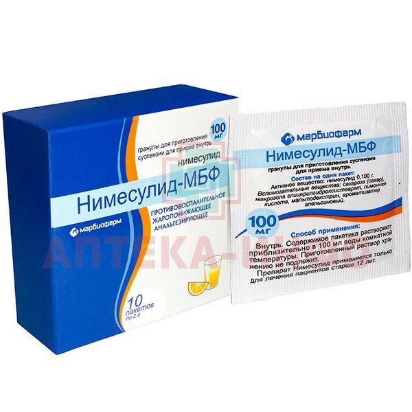 Нимесулид-МБФ пак.(гран. д/приг. сусп. д/приема внутрь) 100мг 2г №10 Марбиофарм/Россия