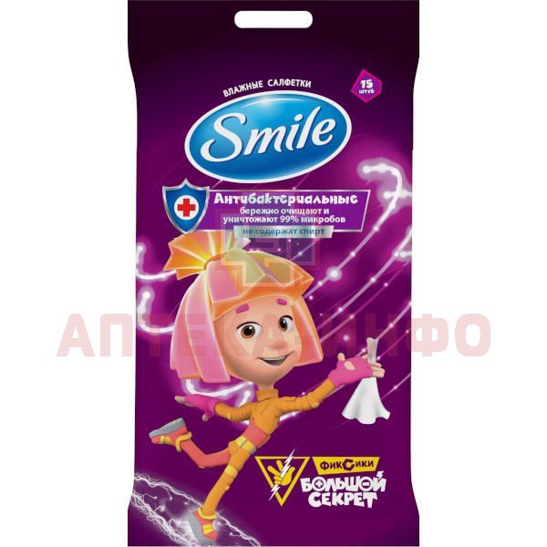 Салфетки SMILE влажн. антибактериальные Фиксики №15 Гранд