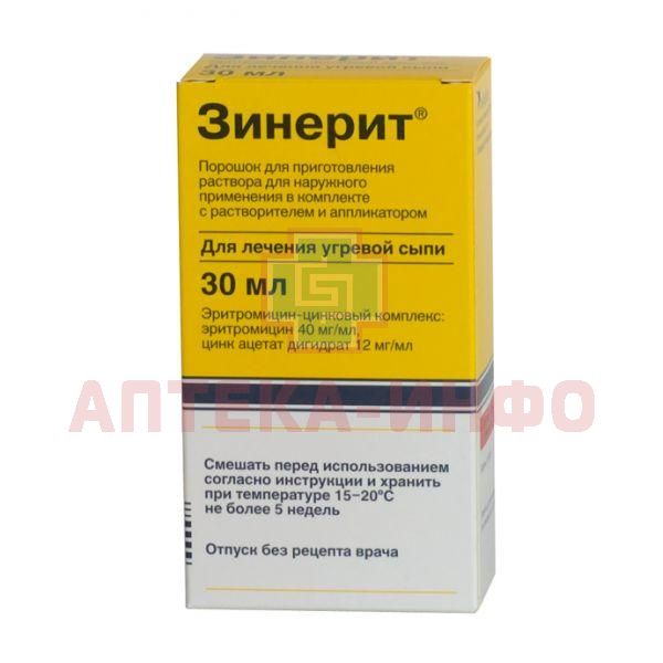 Зинерит фл.(пор. д/р-ра наружн.) 30мл №1 + р-ль (Astellas Pharma/Нидерланды)