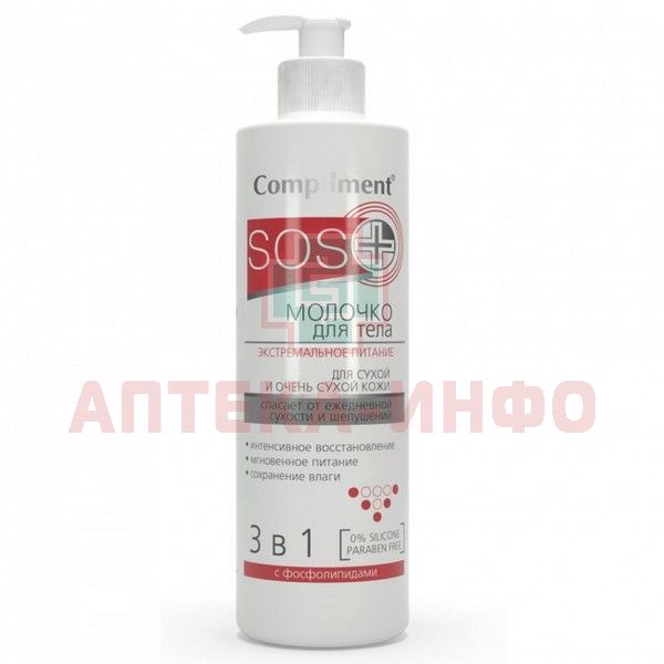 - Compliment SOS+ молочко для тела ЭКСТРЕМАЛЬНОЕ ПИТАНИЕ 3 в1 - для сухой и очень сухой кожи 3 в1, спасает от ежедневной сухости и шелушений