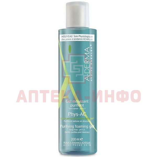 A-Derma Phys-AC Gel Moussant Purifiant (А-Дерма Физ-АК Гель очищающий пенящийся) для проблемной кожи. Настоящая находка для проблемной кожи подростков и взрослых – пенящийся гель Физ-АК от А-Дерма. Средство не содержит мыла и не пересушивает кожу, что важно для ухода за проблемной кожей, которая уже имеет дисбаланс. Гель эффективно очищает эпидермис, а за счет текучей, легкой пенящейся текстуры быстро смывается. После применения A-Derma Phys-AC Gel Moussant Purifiant кожа становится чистой и мягкой, без жирного блеска и сухости. Результаты исследований показали: чистая кожа – 98%; мягкое очищение – 100%.