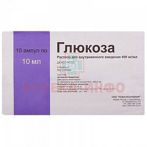 Глюкоза амп.(р-р д/в/в введ.) 40% 10мл №10 короб.карт. Новосибхимфарм
