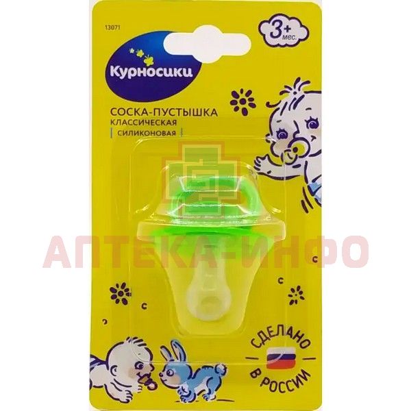 Соска-пустышка КУРНОСИКИ 13071 силикон. классич. Солнышко 3мес.+ (зелен.) Sun Bond International/Китай