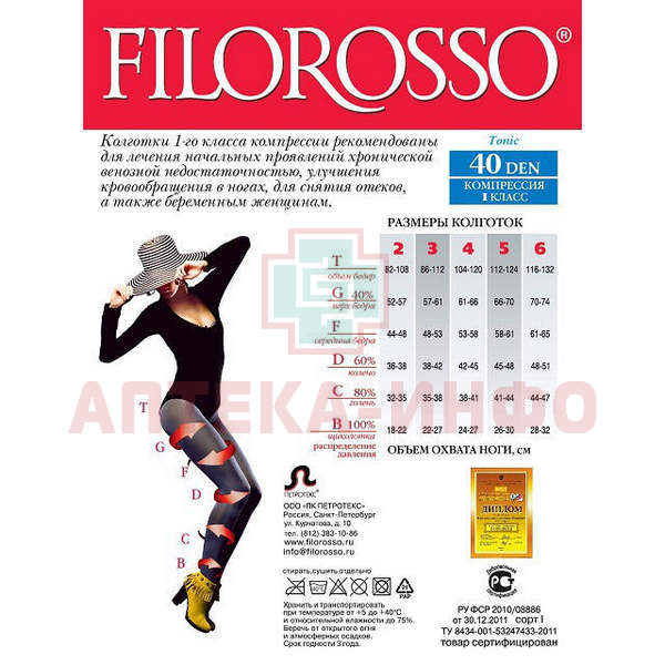 Колготы FILOROSSO TONIC леч.-проф. 40den 1-кл. разм. 3 черн. Петротекс