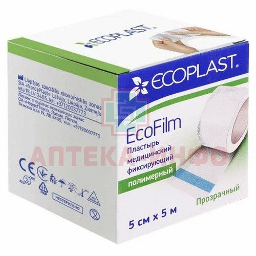 - Современный гипоаллергенный медицинский фиксирующий пластырь "EcoFilm" на основе полимерной микроперфорированной полупрозрачной плёнке, обладает высокой воздухопроницаемостью. Лейкопластырь производится на новом, современном оборудовании, с использованием материалов от лучших европейских фабрик. Пластырь "EcoFilm" создан для щадящей фиксации повязок всех видов; для закрепления зондов, канюль, катетеров. "EcoFilm" выглядит эстетично, не «цепляется» за одежду, надёжно держится, удаляется комфортно и без отслоений, устойчив к рентгеновскому излучению и температурным воздействиям. Благодаря зигзагообразной кромке "EcoFilm" легко рвется без использования ножниц. Лейкопластырь производится с использованием гипоаллергенного клея. Рекомендуется для пациентов с особо чувствительной кожей, не вызывает мацерацию кожи. Медицинский фиксирующий пластырь "EcoFilm" произведен на катушке, упакован в упаковку из качественного экологичного картона.