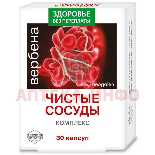 - ВЕРБЕНА-ЧИСТЫЕ СОСУДЫ КОМПЛЕКС - натуральное эффективное средство нового поколения. Способствует улучшению функционального состояния сосудов, сохранению их эластичности и проходимости, снижает риск тромбообразования.
