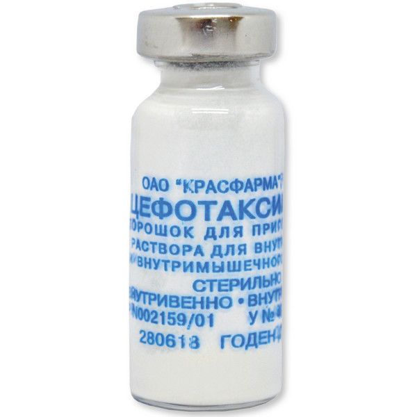 цефотаксим натрия в пересчете на цефотаксим - 0,5 г и 1,0 г.