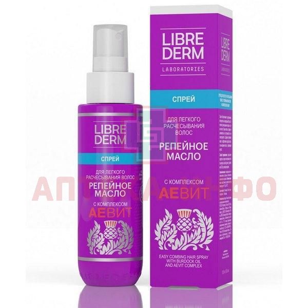 Аевит "Либридерм" (Librederm) масло репейное спрей д/легкого расчесывания волос 100мл Дина+