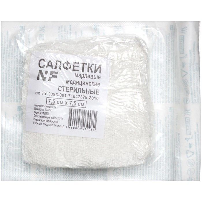 Салфетки стер. 7,5см х 7,5см 12-слойн. №10 Ньюфарм (г. Кинешма)
