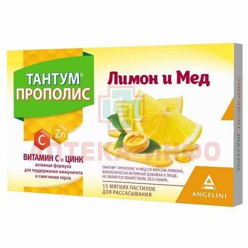 БАД к пище Тантум® Прополис и мед со вкусом лимона — это мягкие пастилки для рассасывания на основе натурального прополиса, обогащенные витамином С, медом и экстрактом куркумы для поддержания иммунной системы организма и смягчения горла.Рекомендации по применению
