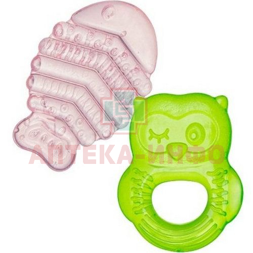Прорезыватель заполнен очищенной питьевой водой, что позволяет охлаждать прорезыватель, прежде чем дать его малышу. Холод слегка обезболивает десна. В ассортименте два дизайна: сова и рыбка.