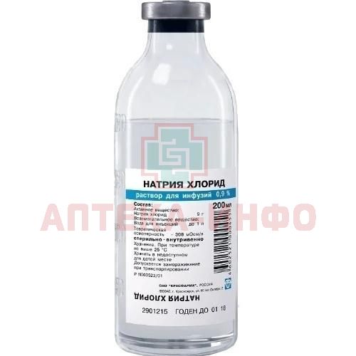 Оказывает дезинтоксикационпос и регидратирующее действие. Восполняет дефицит ионов натрия при различных патологических состояниях. 0,9% раствор натрия хлорида изотоничен плазме человека и поэтому быстро выводится из сосудистого русла, лишь временно увеличивая объем циркулирующей крови (эффективность при кровопотерях и шоке недостаточна).