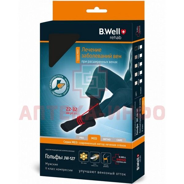 - Компрессионные гольфы B.Well rehab серии MED предназначены для улучшения венозного оттока при заболеваниях вен у мужчин.