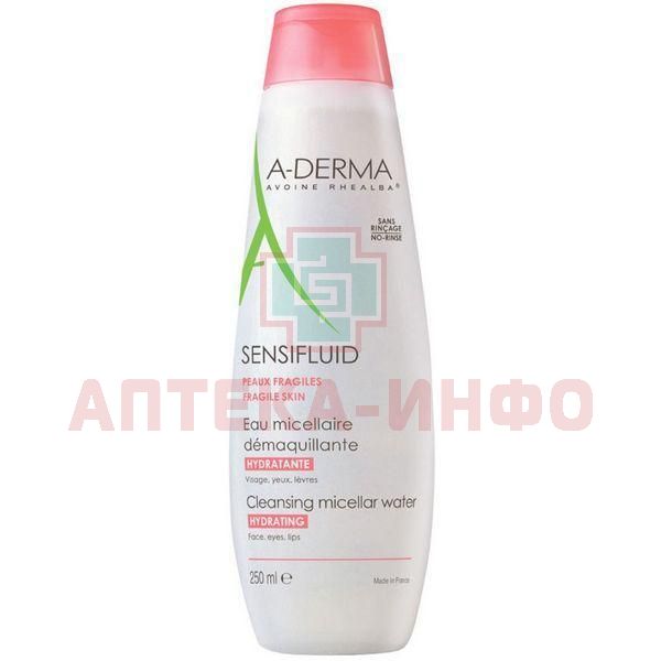 A-Derma Sensifluid hydrating micellar water (А-Дерма Вода мицеллярная) для сухой, обезвоженной кожи. Мицеллярная вода Sensifluid А-Дерма обладает высокой переносимостью и подходит для демакияжа кожи лица, области глаз и губ. Мицеллы 100% растительного происхождения притягивают частицы косметики, что избавляет от необходимости теперь кожу ватным диском для качественного очищения. Чистая кожа без повреждений и раздражения! Мицеллярная вода очистит поверхность кожи не только от косметики, но и различных загрязнений среды, себума, пота, микробов и пр. Для более мягкого очищения формула A-Derma Sensifluid hydrating micellar water обогащена глицерином, эффект увлажнения сохраняется до 3-х часов после применения средства. Мицеллярная вода А-Дерма не требует смывания, обладает свежим ароматом, рекомендуется для сухой, обезвоженной, хрупкой кожи.