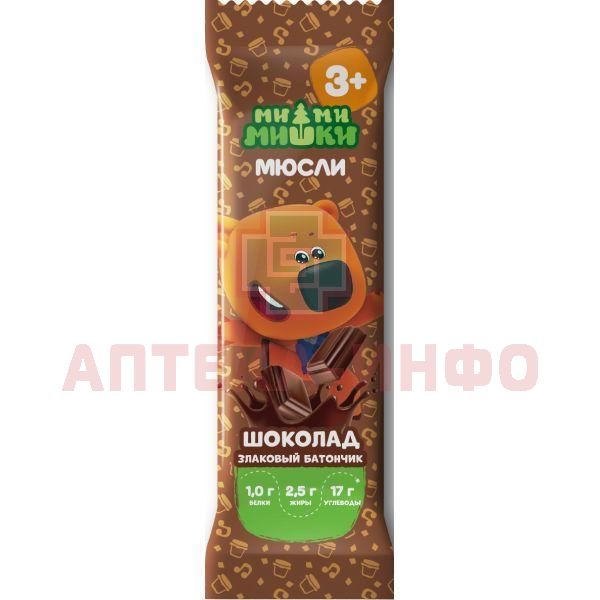 Батончик-мюсли МИ-МИ-МИШКИ злаковый шоколад 24г Любятово/Россия