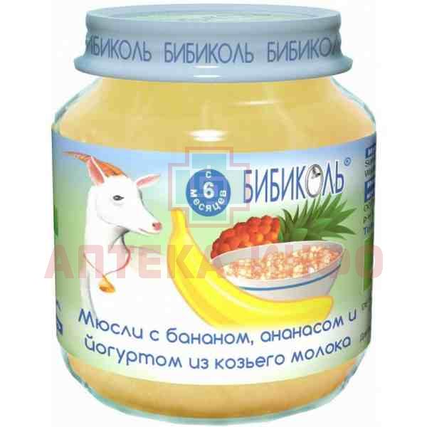 Пюре БИБИКОЛЬ мюсли/банан/ананас/йогурт из коз.мол. (с 6 мес) 125г Бибиколь/Германия