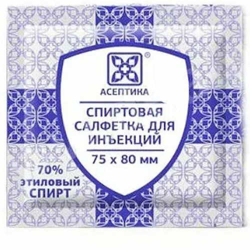 Салфетки Спиртовая однораз. д/ин. 75х80мм №400 с этиловым спиртом Асептика/Россия