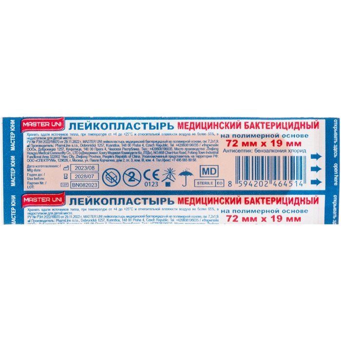 Лейкопластырь бактерицидный MASTER UNI 1,9см х 7,2см (полимер. основа) PharmLine Limited/Великобритания