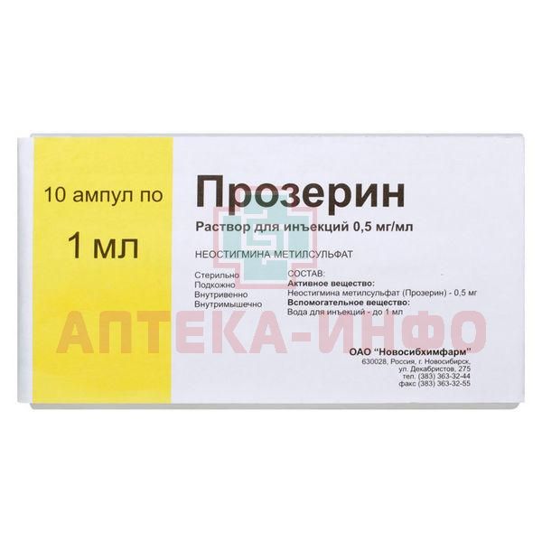 Прозерин амп.(р-р д/ин.) 0,5мг/мл 1мл №10 (короб. карт.) Новосибхимфарм/Россия