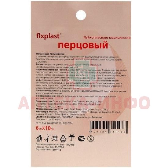 Лейкопластырь Fixplast перцовый 6 х 10см Changzhou Huailian Health Dressing/Китай