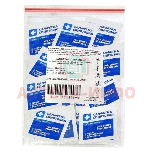 - Салфетка спиртовая антисептическая из нетканого материала, стерильная, одноразовая размером (30±3)мм х (65±5)мм