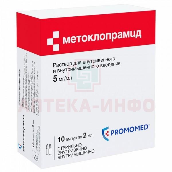 Метоклопрамид амп.(р-р д/в/в и в/м введ.) 5мг/мл 2мл №10 Биосинтез