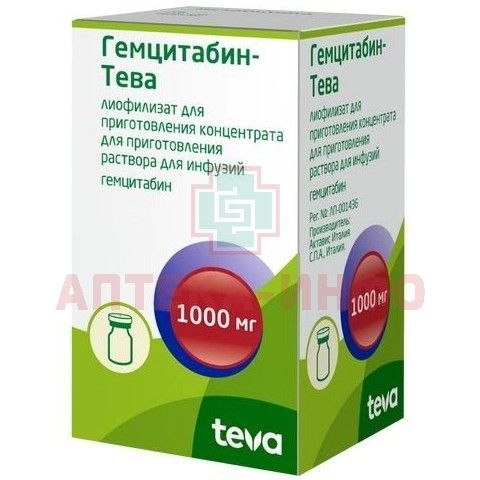 Гемцитабин-Тева фл.(лиоф. д/приг. конц. д/приг. р-ра д/инф.) 1000мг №1 Actavis/Италия